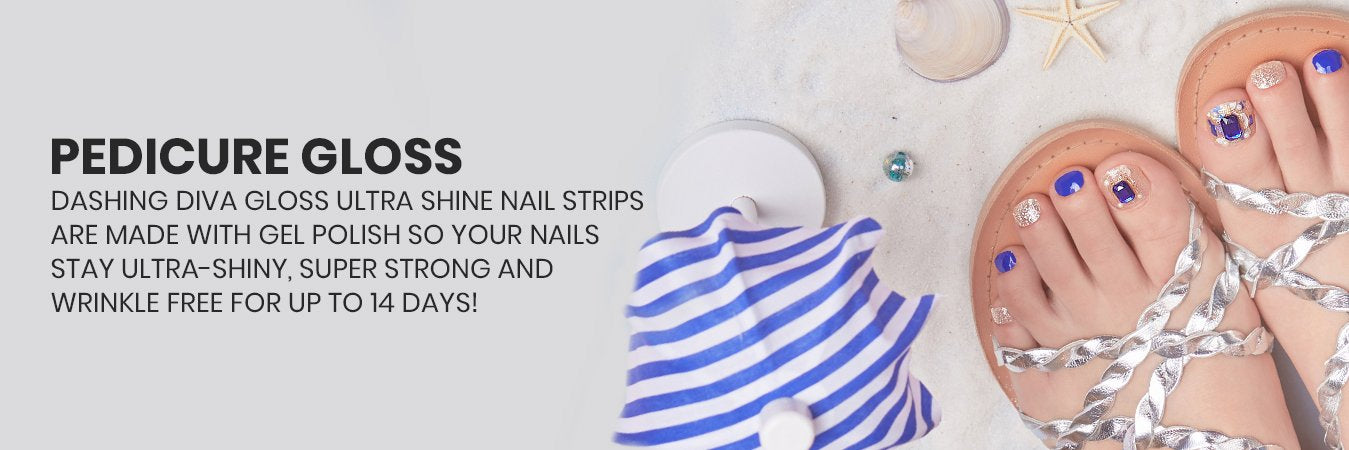 Dashing Diva Gloss Ultra Shine Nail Strips are made with gel polish so your nails stay ultra-shiny, super strong and wrinkle free for up to 14 days! These nail strips don't require UV dry time or soak off removal and can be stored and saved for future wear and don't dry out like other nail polish strips do.