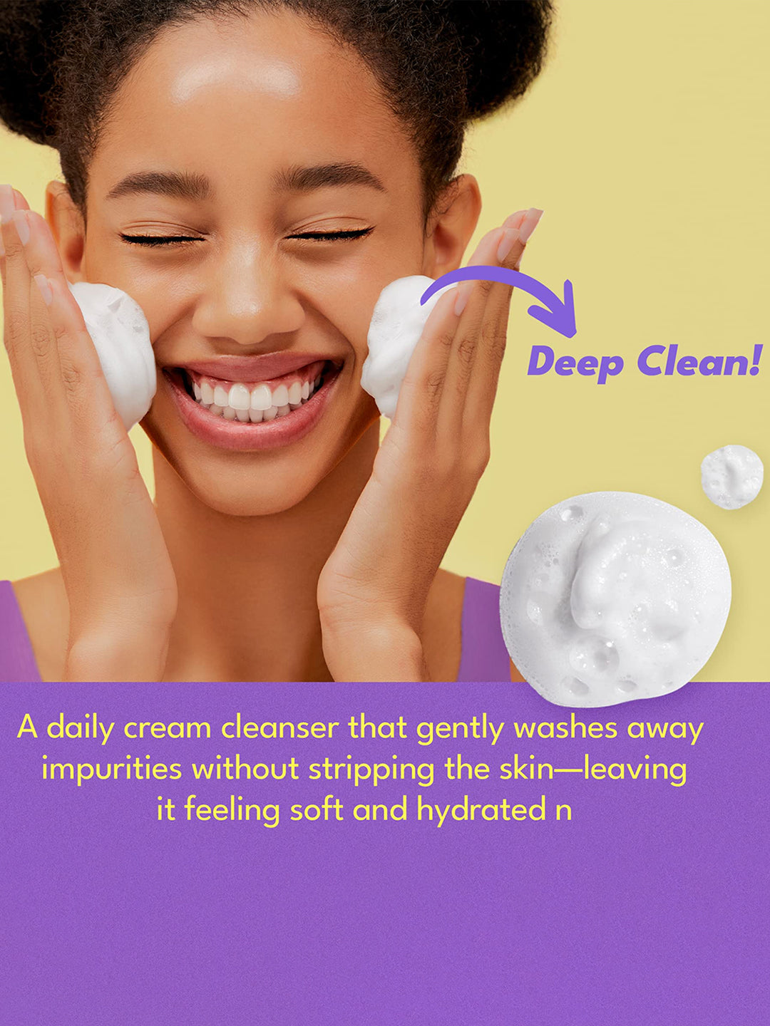 Lather a small amount of cleanser between your wet hands and apply to face with circular motions. Rinse the skin with lukewarm water.