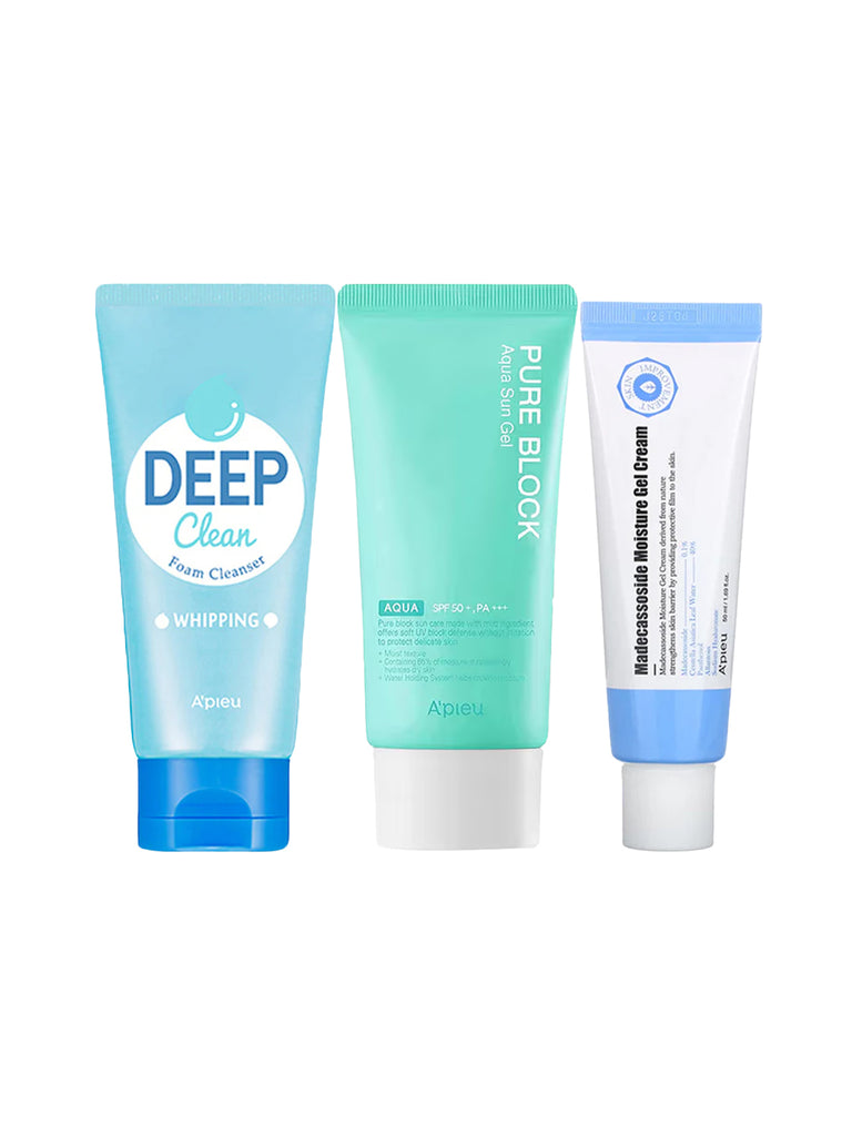 1.  A'PIEU PURE BLOCK AQUA SUN GEL SPF50+/PA+++  Key Points & Features: SPF50+ / PA+++ UVA & UVB protection Lightweight, fast-absorbing gel Hydrates without greasiness No white cast,...
