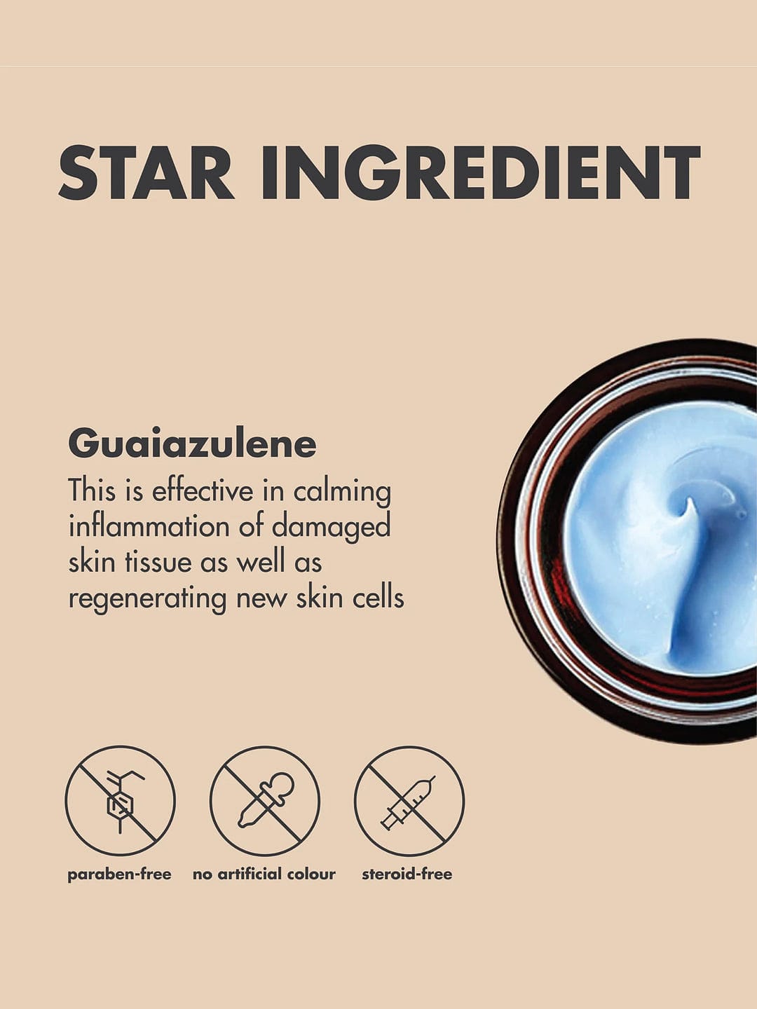 - Guaiazulene: A herbal ingredient extracted from chamomile that is effective in calming inflammation of damaged skin tissue as well as regenerating new skin cells. In Japanese clinical trials, Guaiazulene demonstrated positive effects in sunburns, eczema, and ulcerative skin disease. It is often used as the main raw ingredient in burn ointments.