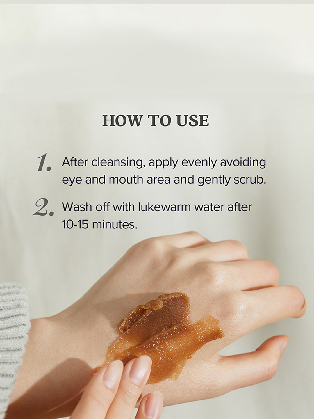Indulge in the Sweetness of Youth: Infused with the finest black sugar granules, this scrub offers a delightful sensory experience while effectively buffing away dullness and revealing the youthful glow hidden beneath.