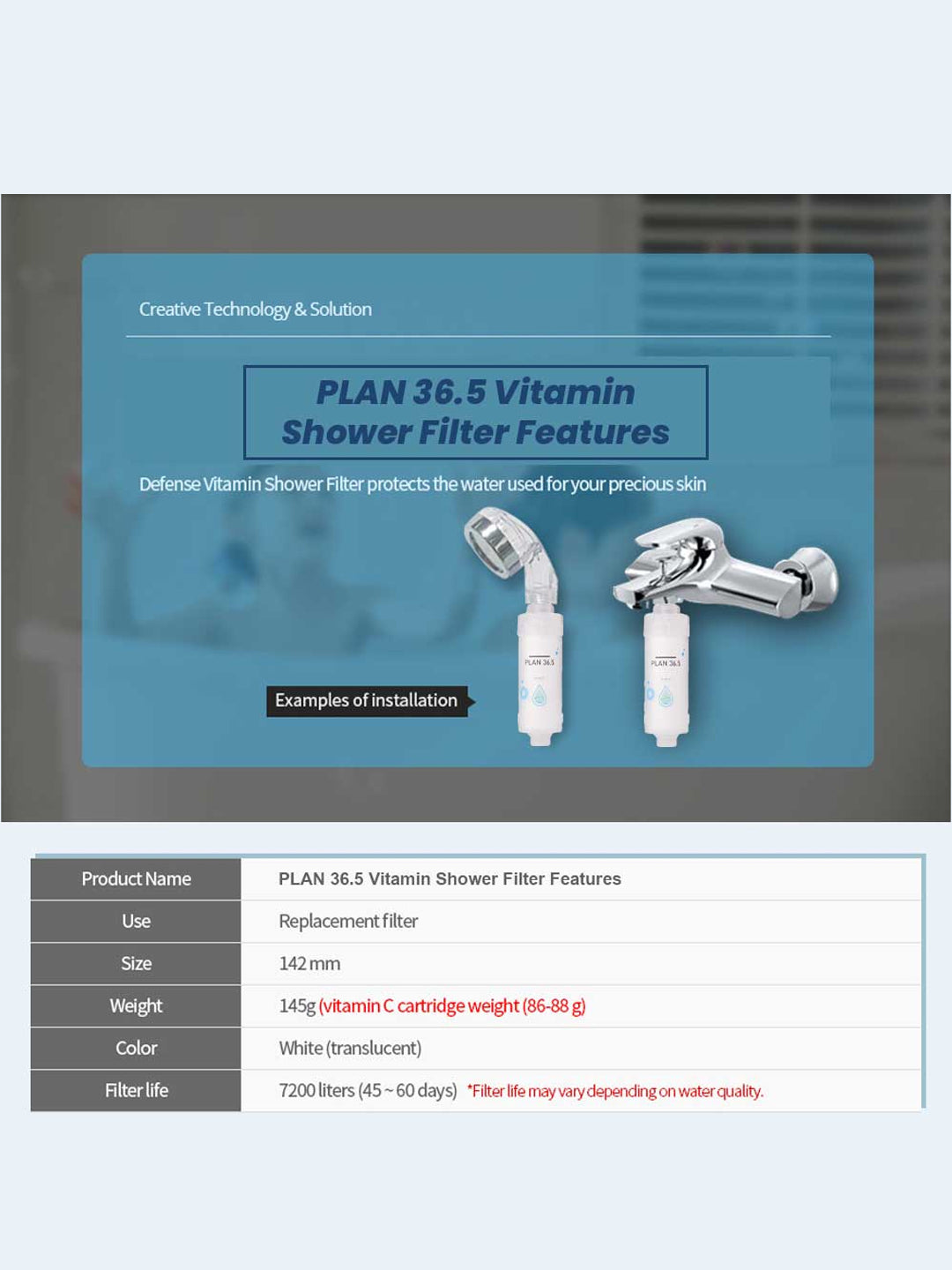 - This shower filter for bathroom from a world-renowned brand Plan36.5 is an innovative Korean product designed to provide you the water in its purest form by removing all the contamination.