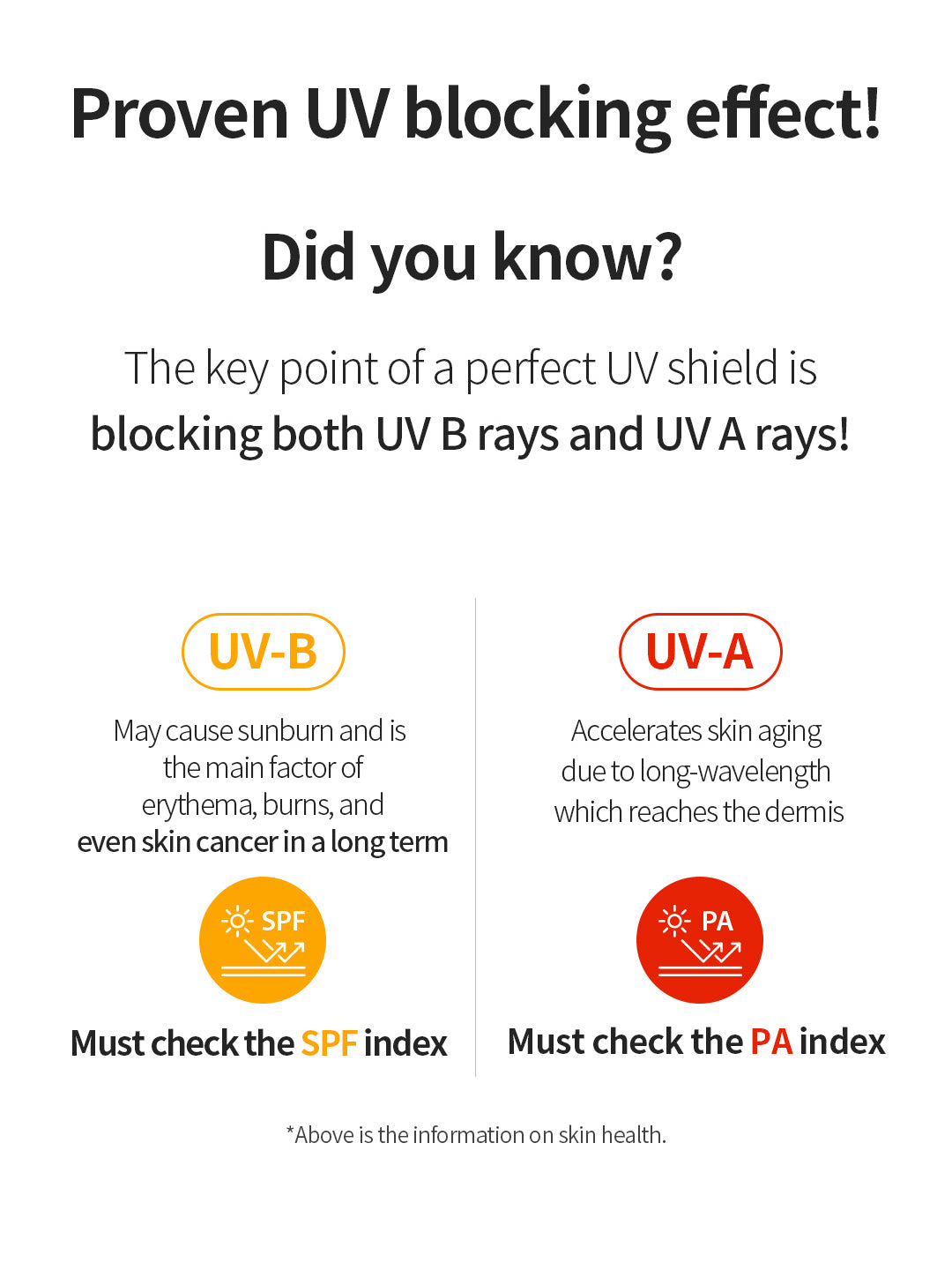 UVA - Long wave ultraviolet A (UVA) rays penetrate deep into the dermis, the skin's thickest layer and causes premature skin aging, wrinkling and dark spots.