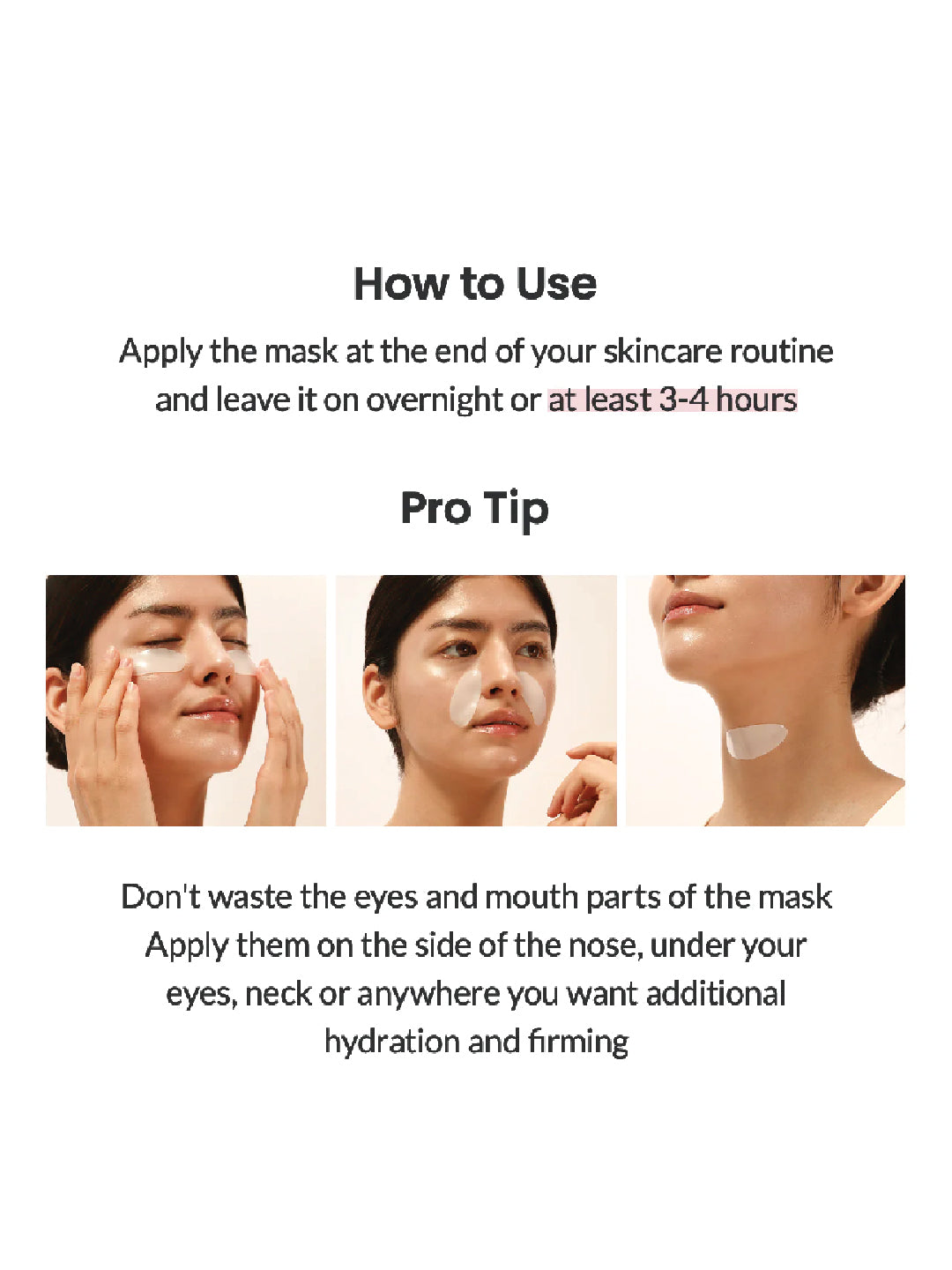 Wake up with dewy, glowing skin with the Viral Korean "Pore Eraser" Mask. The Biodance Bio-Collagen Real Deep Mask is a Hydration + Elasticity + Pore Care all-in-one Anti-Aging mask containing 150,000ppm of probiotics, collagen, and hyaluronic acid. The formula utilizes Ultra-Low Molecular Weight (234 Dalton) Hydrolyzed Collagen that ensures optimal penetration and effectiveness, and visibly smoothes the appearance of fine lines and wrinkles. It is a unique hydrogel mask with solidified essence, that slowly becomes transparent as effective ingredients are absorbed into the skin.Clinical Results After Single Use: -Skin moisture increased by 256%-Skin elasticity increased by 34%-Pore size decreased by 83%