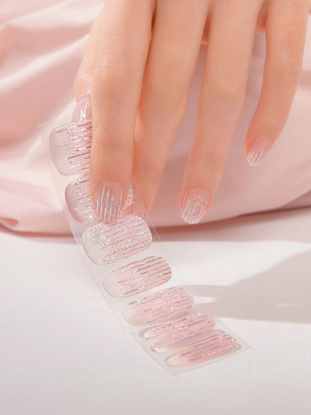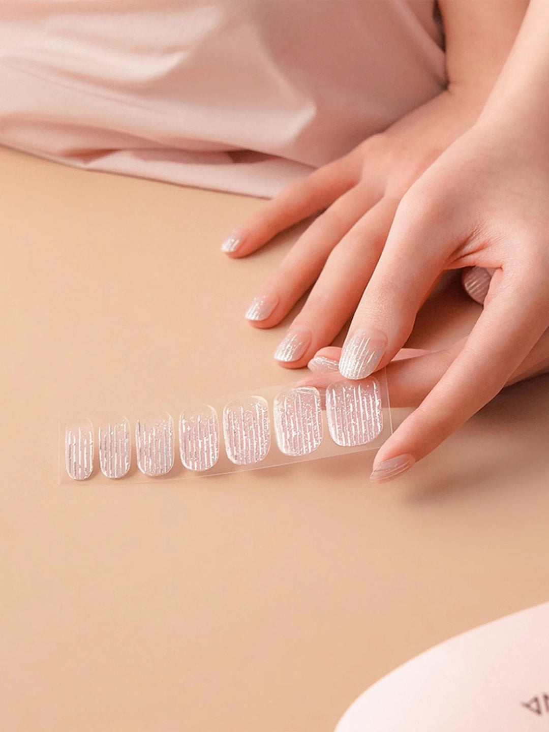 - Place strip over the center of your nail, starting at cuticle line and pressing outward. For optimal adhesion, the strip should be placed above the cuticle line avoiding skin or cuticles.