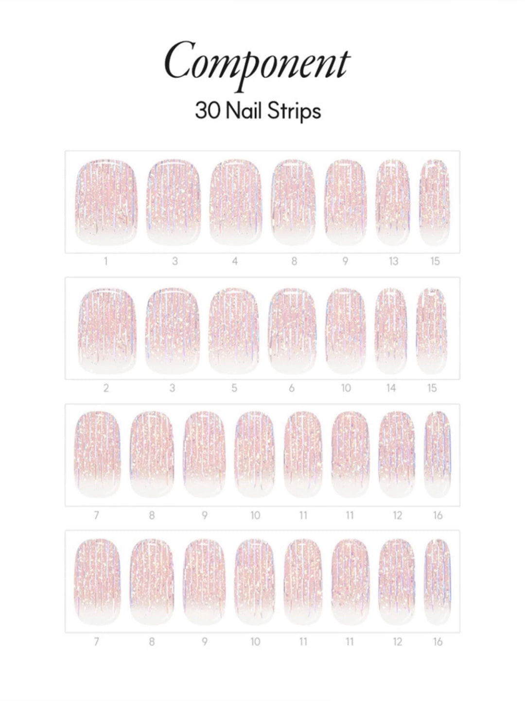 Includes: 32 semi-cured gel nail strips (in 12 sizes), Nail file, Manicure stick, 2 Prep pads