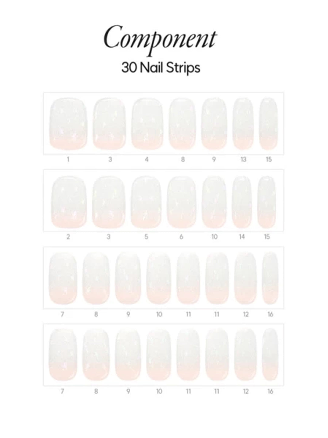 Includes: 32 semi-cured gel nail strips (in 12 sizes), Nail file, Manicure stick, 2 Prep pads