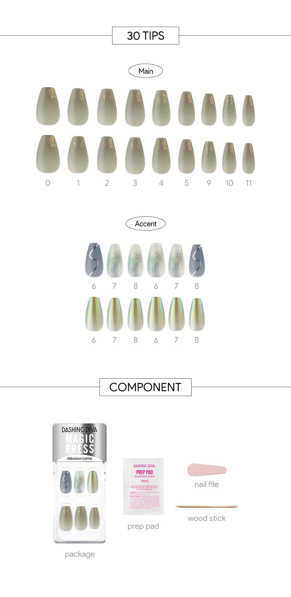 - 30 tips = Main 18 + Accent 12