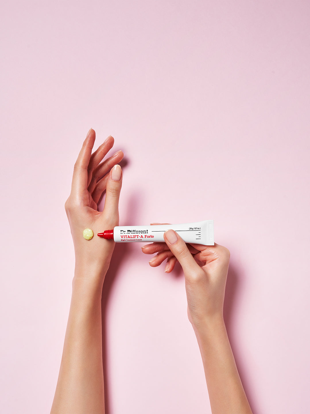 Dr. Different VITALIFT-A Night Treatment Cream results from a decade-long quest for perfection. It contains 0.1% of Retinal, a high-end ingredient, stabilized with our patented Niosome technology. This powerhouse stimulates collagen production, resulting in a firmer, more youthful complexion, and effectively improves uneven skin tone, and helps with dark spots and acne. It's efficient, stable, and safer than Retinol. Ideal for Retinal beginners. Comes in a special airless tube that helps keep the Retinal stable.