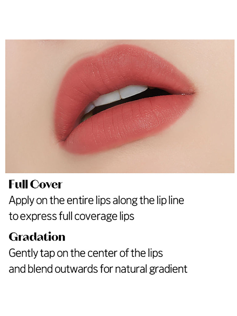 Fixing TintHydrating tint that stains less on your mask with a lightweight matte finish- Comfortable FinishHydro-matte texture that sets to a comfortable moist finish- Certified by Korean agency of Vegan Certification and ServicesStrictly tested by Korea agency of Vegan Certification and Services- #Yes Fixing No Smudging #Mask ProofLip stain with no mask smudging.