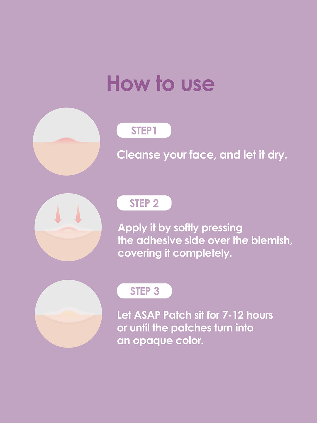 2. Apply the ASAP patch by gently pressing the adhesive side over the blemish, covering it completely.
