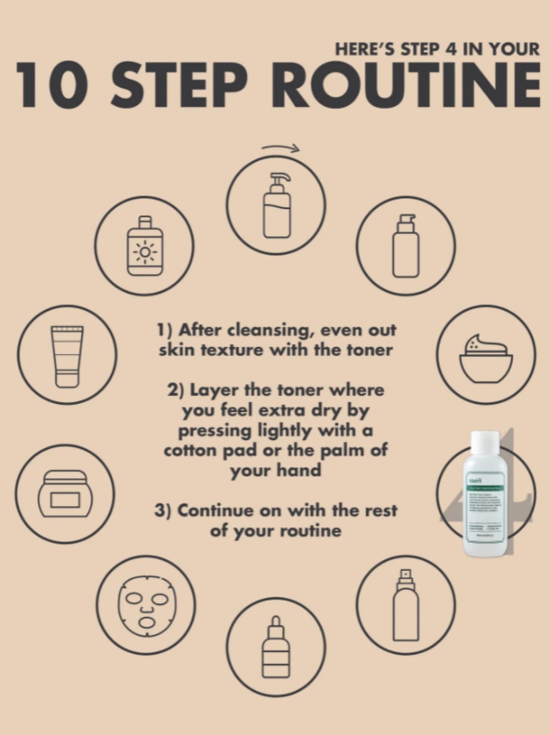 After cleansing, even out your skin texture using a cotton pad soaked in the toner.