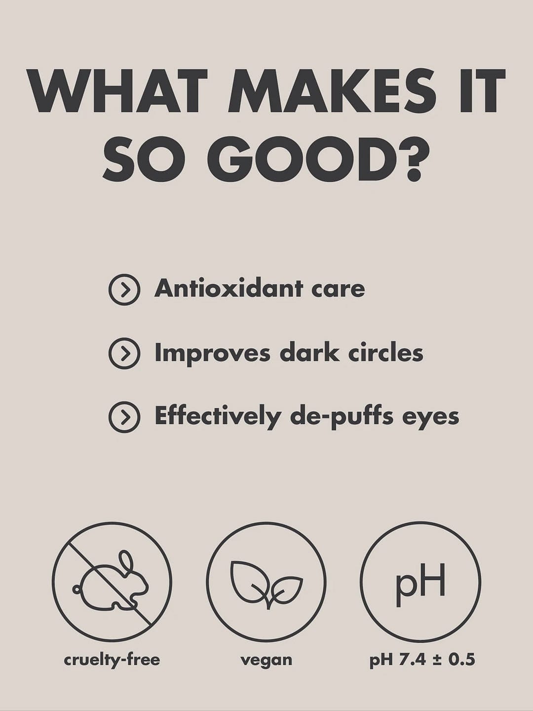 The Fundamental Eye Awakening Gel is a gel moisturizer that awakens fatigued eyes while hydrating and refreshing the eye area.Main ungredients - Caffeine and Red Bean extract help de-puff the eyes. It also provides antioxidant benefits and effectively cleans, freshens and maintains the eye area, while improving skin tone and dark circles.It quickly absorbs into the skin and has a cooling sensation that enables you to take care of the eye area, even on busy mornings and can be used under makeup.