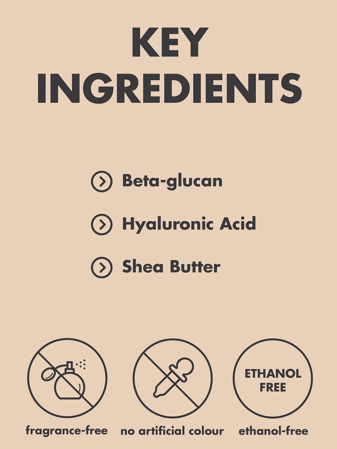 - Enriched with beta-glucan, hyaluronic acid, and polyquaternium-51