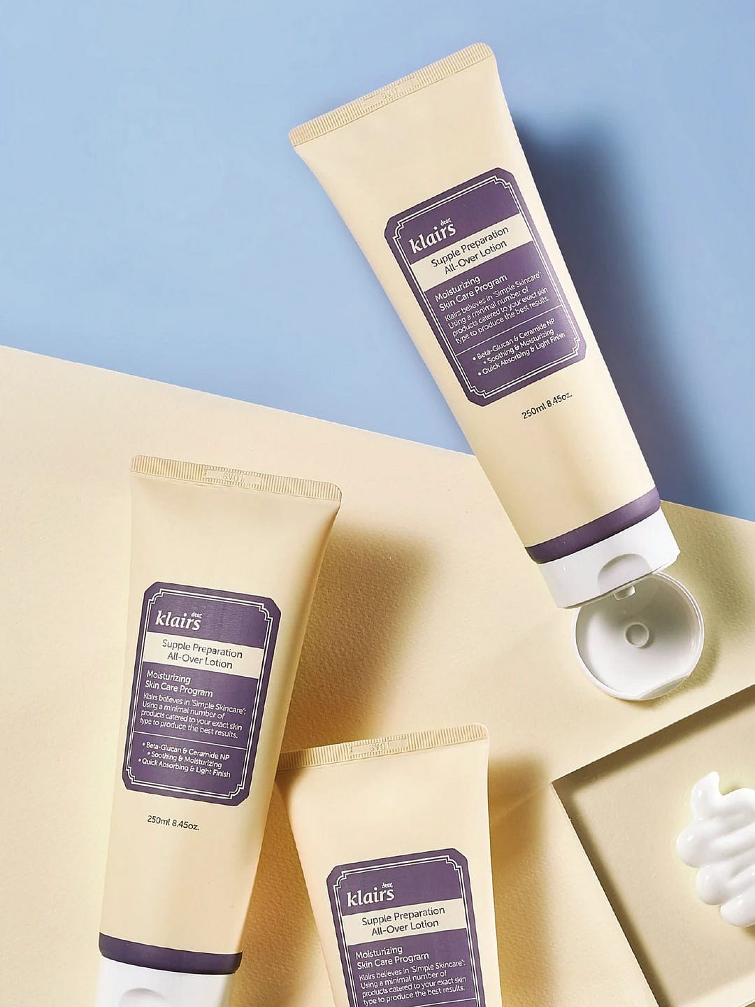 The Supple Preparation All Over Lotion is one product that will take care of all your moisturizing needs. It is a light lotion that quickly absorbs into the skin without any stickiness or clumping. Key moisture elements from the Klairs toner have also been included in this lotion. It contains Beta-glucan, Hyaluronic Acid, and Polyquaternium-51, along with other moisturising agents Shea Butter and Ceramide.It can be used all throughout the year, in any season, and can be used on the face as well as the body - thanks to its smooth, light finish that is full of hydration. With a generous capacity for various applications, you can use ample amounts as needed anywhere on dry areas.