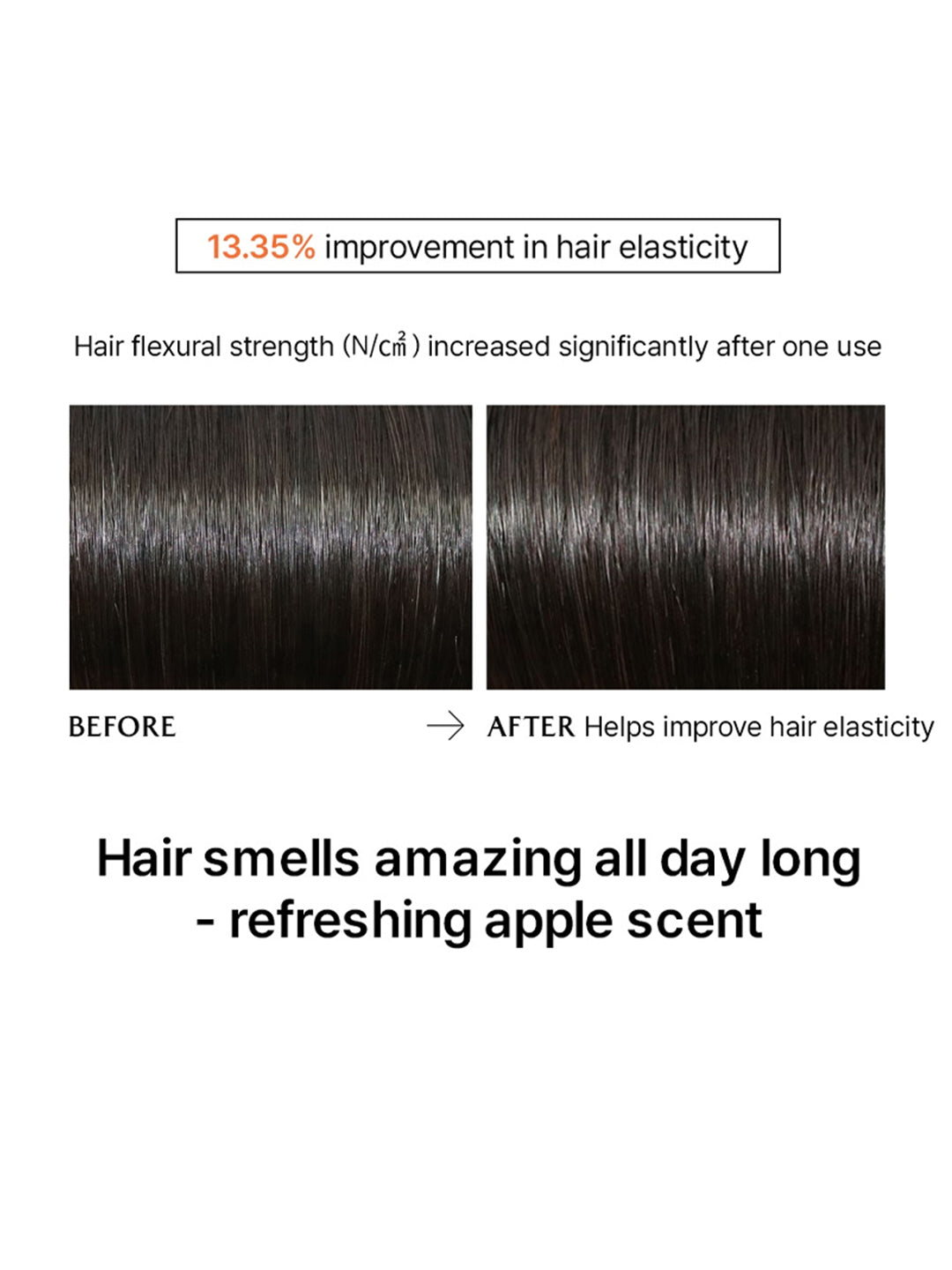 Water, Vinegar(50,000ppm), Hydrogenated Starch Hydrolysate, Propylene Glycol, Cetyl Alcohol, C13-15 Alkane, Pyrus Malus (Apple) Fruit Extract(40,000ppm), Dimethicone, Glycerin, Myristyl Alcohol, Cetearyl Alcohol, Stearamidopropyl Dimethylamine, Vitis Vinifera (Grape) Fruit Extract, Royal Jelly Extract,Persea Gratissima (Avocado) Fruit Extract, Hippophae Rhamnoides Fruit Extract, Saccharum Officinarum (Sugarcane) Extract, Melaleuca Alternifolia (Tea Tree) Leaf Extract, Olea Europaea (Olive) Fruit Extract, Daucus Carota Sativa (Carrot) Root Extract, Prunus Mume Fruit Extract , Rubus Chamaemorus Fruit Extract, Hibiscus Sabdariffa Flower Extract, Luffa Cylindrica Fruit Extract, Actinidia Chinensis (Kiwi) Fruit Extract, Citrus Limon (Lemon) Fruit Extract, Adansonia Digitata Seed Extract, 1,2-Hexanediol, Camellia Japonica Seed Oil, Vitis Vinifera (Grape) Seed Oil, Argania Spinosa Kernel Oil, Glyceryl Stearate SE, Steartrimonium Chloride, Behentrimonium Chloride, Aminopropyl Dimethicone, Elaeis Guineensis (Palm) Oil, Amodimethicone, Cetrimonium Chloride, Trideceth-12, Isopropyl Alcohol, Phenoxyethanol, Hydrolyzed Collagen, Hydrolyzed Keratin, Hydrogenated Lecithin, Ceramide NP, Lactic Acid, Disodium EDTA, Fragrance