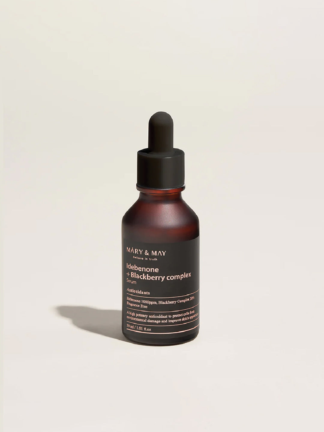 Mary & Mayβs Idebenone + Blackberry Complex Serum is a powerful antioxidant-rich formula designed to visibly reduce the signs of aging, improve skin elasticity, and protect the skin from environmental damage.