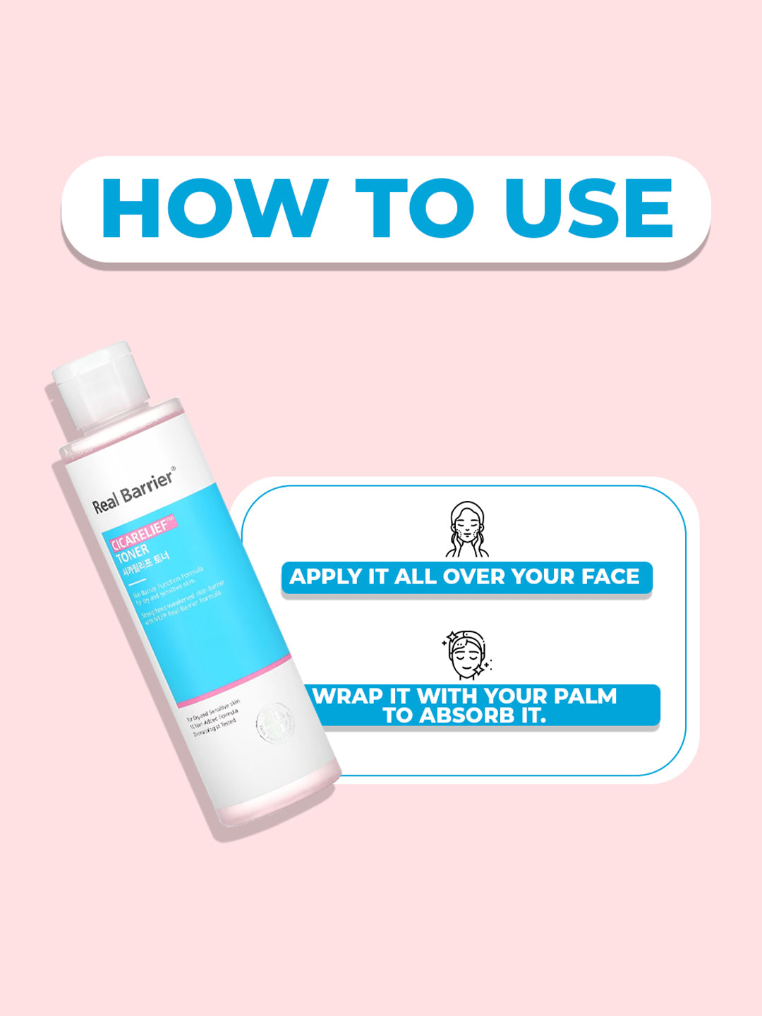 Moisten a cotton pad and gently sweep across the face or dispense a dime-sized amount into palm and apply to the face in a gentle patting motion after cleansing.