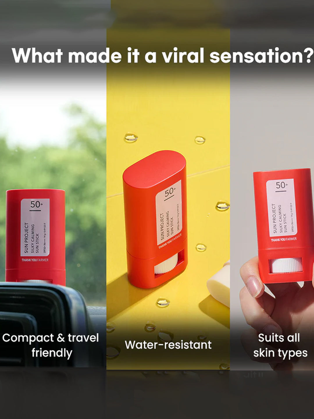 Thank You Farmer Sun Project Silky Calming Korean Sun Stick SPF50+ PA++++ contains a blend of effective ingredients like Centella Asiatica, calamine, Asiatic Acid, and Madecassic Acid among others making this sun stick a must-have in your skincare routine. It’s super easy to apply and leaves no white cast which makes it perfect to re-apply over makeup! Best Korean Sun stick in India for the face. Koreans swear by this!